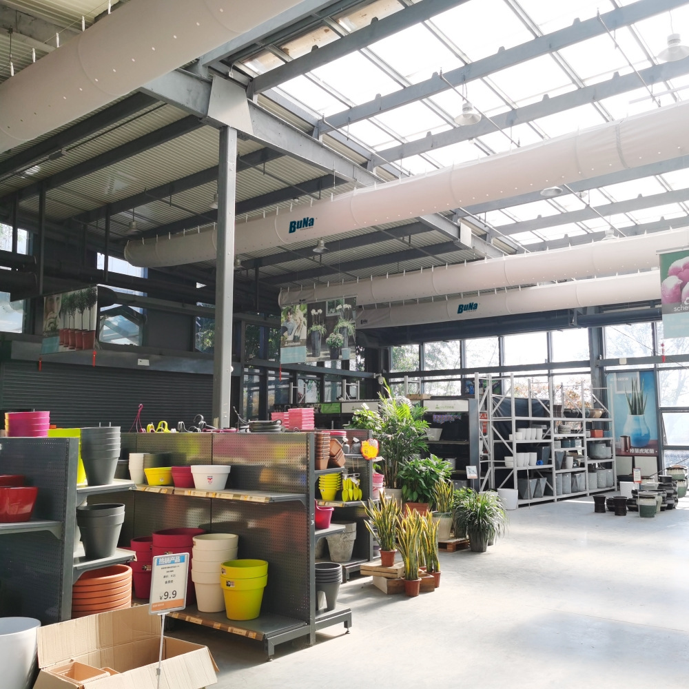 Different types of flowers may have different requirements for temperature and humidity. We can design different hole diameters and spacings on the Bag Air Duct to achieve different air supply volumes in different areas, facilitating more precise environmental control. The flame retardant cloth Air Duct have a simple and smooth appearance and can be chosen in colors consistent with the market's ceiling or structure, enhancing the overall aesthetic appeal of the flower market.